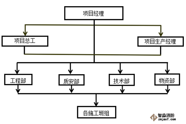 本工程項(xiàng)目組織架構(gòu)及保證體系: