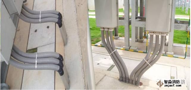 電纜從電纜架引出采用開孔器開孔,安裝電纜管燒焊固定,用阻燃軟管接頭連接。不用軟管接頭,保護管端用熱塑管熱塑。