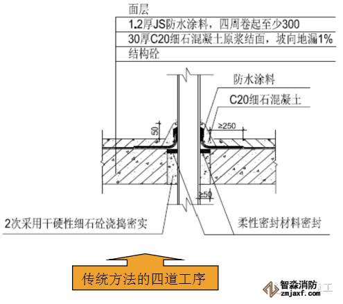 1、衛(wèi)生間排水管穿樓板安裝采用傳統(tǒng)留洞方法工序多、處理不當(dāng)容容易產(chǎn)生滲漏,使用成品防水套管可在結(jié)構(gòu)施工階段一次性預(yù)埋防水套管,工序簡單,固定容易、可靠,不易發(fā)生位移,防滲漏效果明顯。由于衛(wèi)生間滲漏是業(yè)主投訴的主要問題之一,也是房屋建筑工程的通病之一,要解決此種滲漏問題,一定要從“根”上徹底解決。