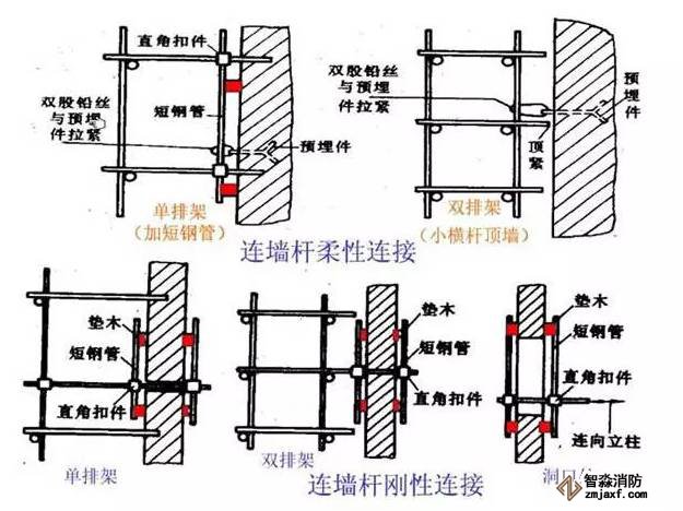 1、利用穿墻螺栓孔,使用三角形支架作底座搭設(shè)鋼管腳手架,高度一般為3個(gè)樓層高9個(gè)人認(rèn)為不安全因素較多,不提倡,但成本低)。