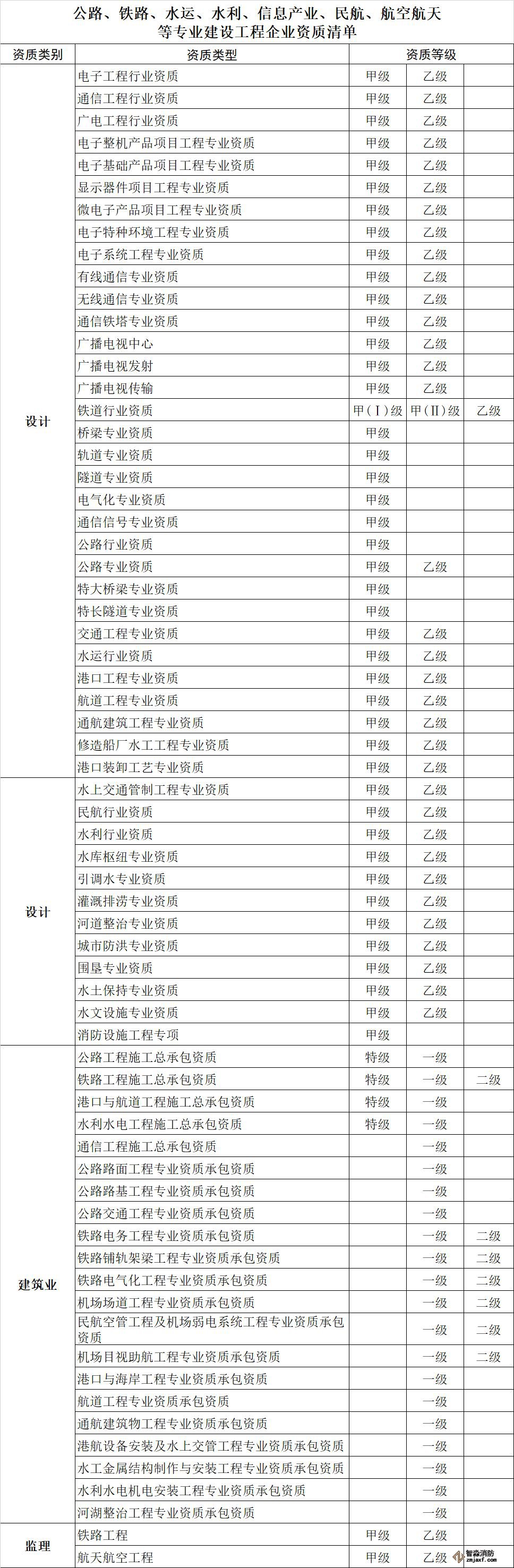 附件:公路、鐵路、水運、水利、信息產(chǎn)業(yè)、民航、航空航天等專業(yè)建設工程企業(yè)資質清單