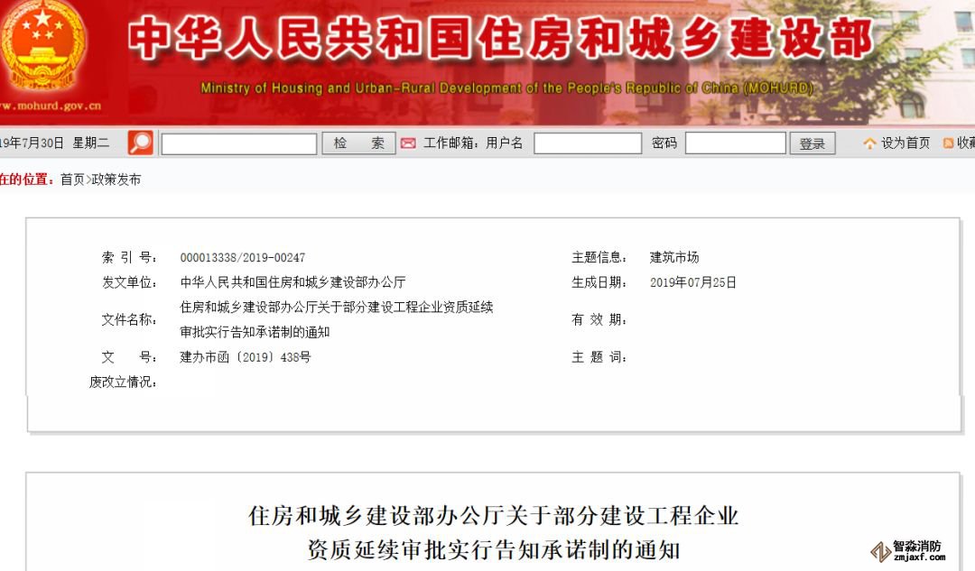 關于部分建設工程企業(yè)資質延續(xù)審批實行告知承諾制的通知