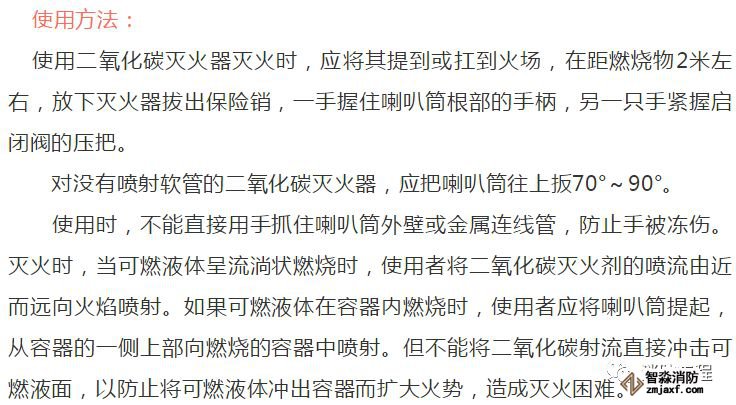 使用二氧化碳滅火器的注意事項