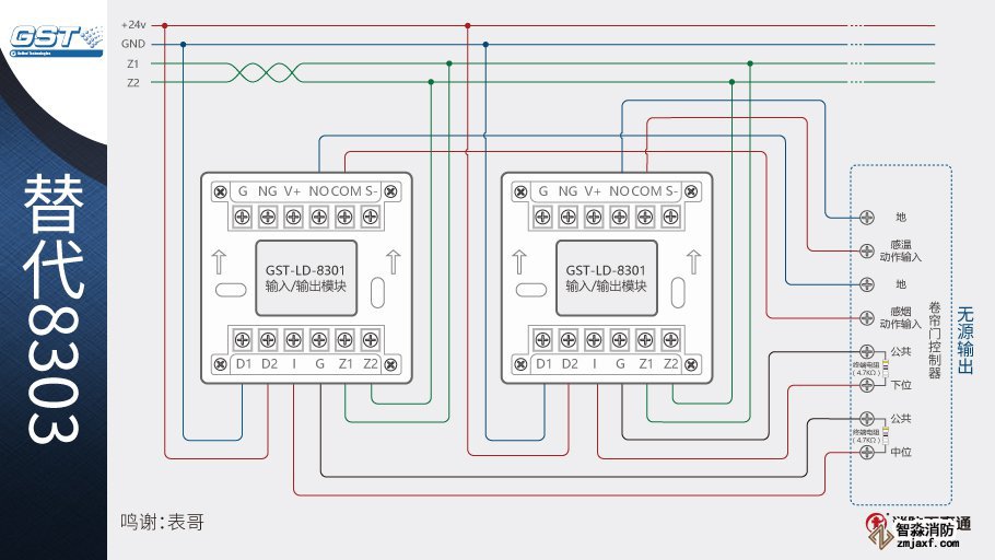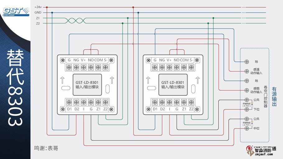 1、海灣8301模塊可以替代海灣的8303模塊控制防火卷簾,兩個8301模塊相當于1個8303模塊。