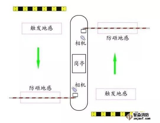 停車場車牌識別系統(tǒng)安裝在地庫坡道上面水平路面上,出口的停車場車牌識別系統(tǒng)安裝在地庫坡道下面的水平地面上。能夠防止當(dāng)一體機(jī)無法識別車牌,造成道閘不能抬桿時,車輛只能停在地庫坡道上的疑問。