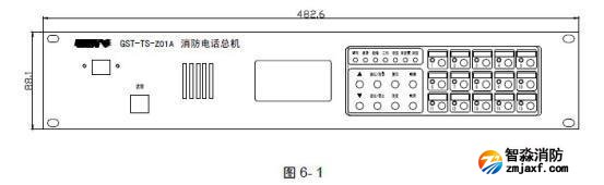 GST-TS-Z01A 型消防電話總機外形尺寸及結(jié)構(gòu)示意圖如圖6-1:
