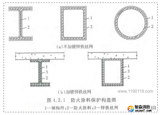 1、根據(jù)《建筑鋼結構防火技術規(guī)范4.2.1執(zhí)規(guī)定,部分涂層內應設置與鋼構件相連接的鍍鋅鐵絲網(wǎng)或玻璃纖維布: