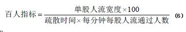 據(jù)此,按照疏散凈寬度指標(biāo)公式計(jì)算出一、二級耐火等級建筑的觀眾廳中每100 人所需疏散寬度為:。