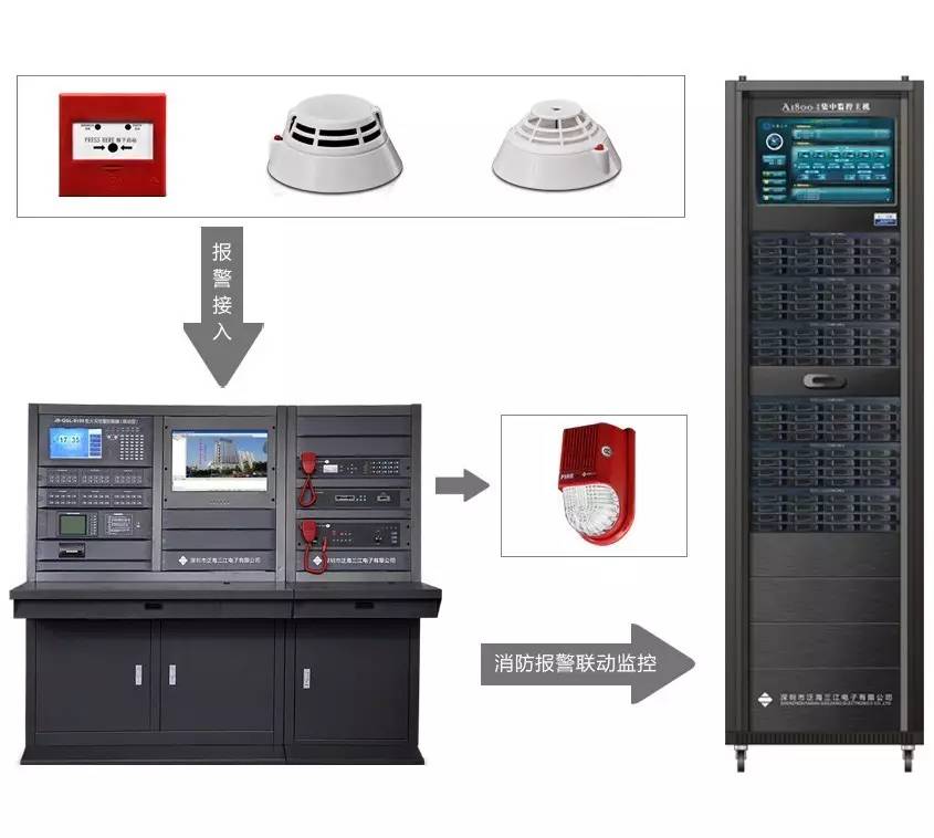 消防報警系統(tǒng)與視頻監(jiān)控智能聯(lián)動系統(tǒng)是結(jié)合當(dāng)代最先進的火災(zāi)報警技術(shù)、信息通訊及網(wǎng)絡(luò)技術(shù)、計算機控制技術(shù)和多媒體顯示技術(shù)、通過網(wǎng)絡(luò)傳輸,實時采集監(jiān)控現(xiàn)場的各類報警信號、故障信號、圖像信息,并及時可靠地將上述信息傳送到遠程的報警檢測中心。在中心可完成對聯(lián)網(wǎng)單位的報警信息顯示,電子地圖操作、數(shù)據(jù)查詢檢索、遠程音視頻傳送、應(yīng)急預(yù)案管理、短信息訂制和發(fā)送等工作。綜合運用地理信息系統(tǒng)、數(shù)字視頻監(jiān)控等信息技術(shù),在監(jiān)控中心內(nèi)對建筑物的火災(zāi)報警情況進行實時監(jiān)測、對消防設(shè)施進行集中管理的消防信息化應(yīng)用系統(tǒng)。