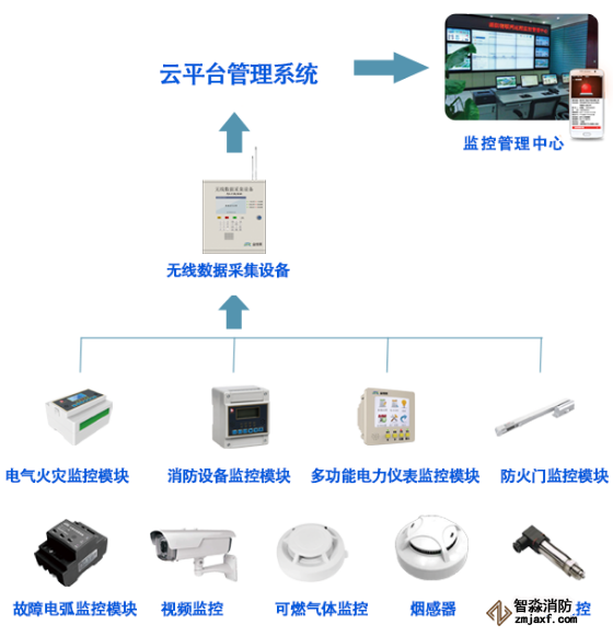 實(shí)現(xiàn)消防設(shè)施運(yùn)行及監(jiān)管的現(xiàn)代化必須構(gòu)建有效的的消防監(jiān)控物聯(lián)網(wǎng)系統(tǒng),采用消防自動報(bào)警系統(tǒng)已有的各種感知設(shè)備、視頻采集設(shè)備等,將感知采集到的大量現(xiàn)場信息,借助消防物聯(lián)網(wǎng)傳輸?shù)较乐笓]中心,將過去封閉、功能單一的火災(zāi)報(bào)警系統(tǒng)改造為網(wǎng)格化、智能化的跨區(qū)域火災(zāi)報(bào)警綜合管理平臺。