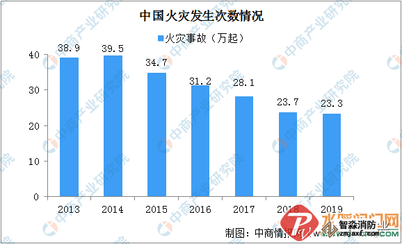 火災事故是現代社會危害較大、發(fā)生較頻繁的災害,據公安部消防局統計資料,我國每年發(fā)生的火災造成了慘重的人員傷亡和巨額的經濟損失。2019年全年共接報火災23.3萬起,亡1335人,傷837人,直接財產損失36.12億元。