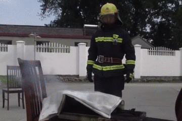 消防員準(zhǔn)備了滅火毯進(jìn)行實(shí)驗(yàn)。