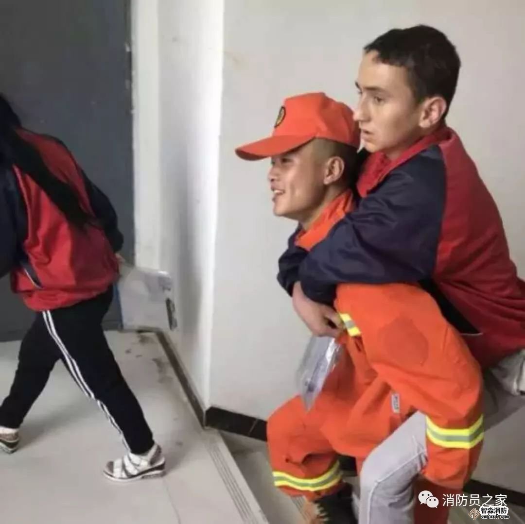 6月8日高考的第二天,喀什地區(qū)公安消防支隊葉城中隊官兵在葉城縣第四中學(xué)高考點執(zhí)勤時,發(fā)現(xiàn)行動不便的考生,將考生背進考場。