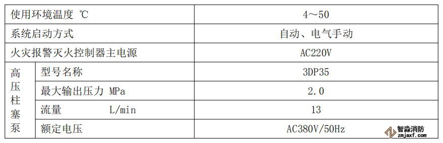 表1-2泵式細水霧自動滅火系統(tǒng)主要參數(shù)