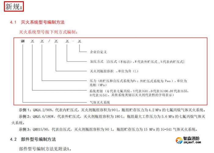 四、更改了“滅火系統(tǒng)型號(hào)編制方法”“部件型號(hào)編制方法”