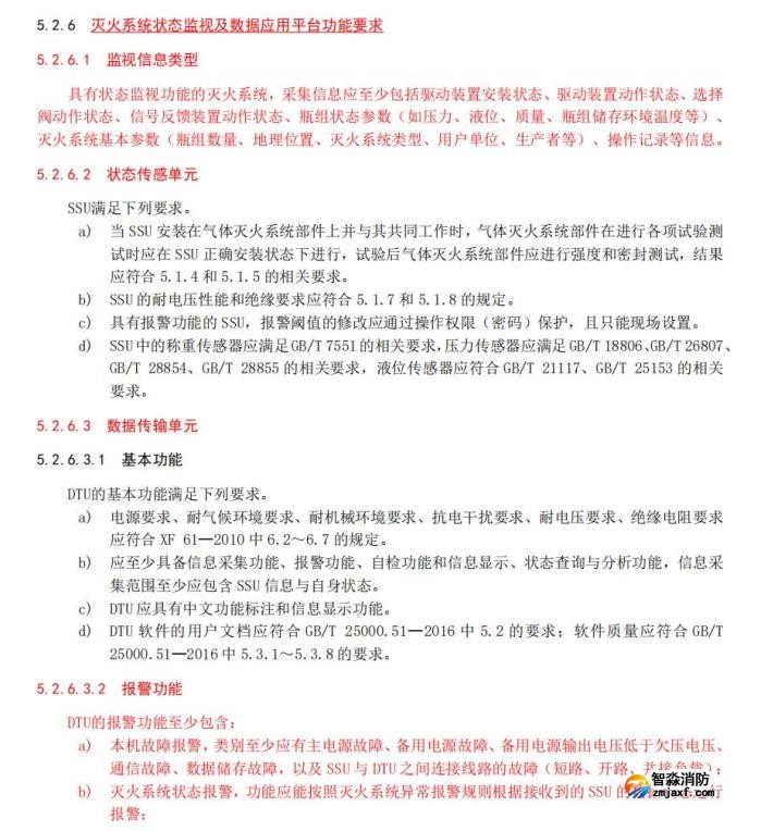 七、增加了滅火系統(tǒng)狀態(tài)監(jiān)視及數(shù)據(jù)應(yīng)用平臺(tái)功能要求和試驗(yàn)方法