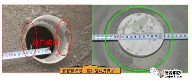 (3)套管預(yù)埋后,露出混凝土地面的部分需用細(xì)混凝土或水泥砂漿作保護(hù)圈,以免造成破損)。