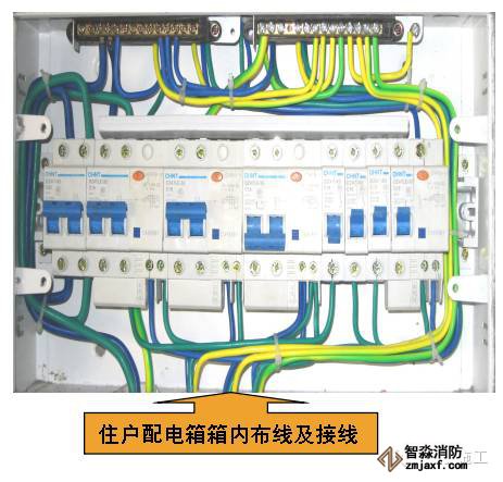 穿線完成后,可進(jìn)行安裝接線工作,在墻體刷白后進(jìn)行。安裝前,先將箱體內(nèi)垃圾清理干凈,再將開關(guān)及其底座安裝在箱體底部,再將零線端子排、地線端子排安裝上,然后接線。接線必須按美觀大方的原則進(jìn)行: