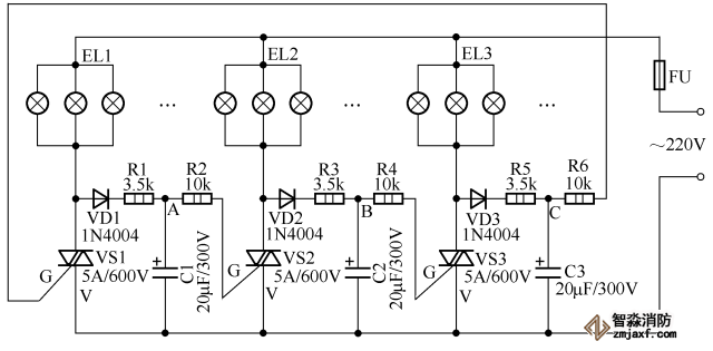 將兩個功率相同的110V白熾燈接在220V電源上使用的電路