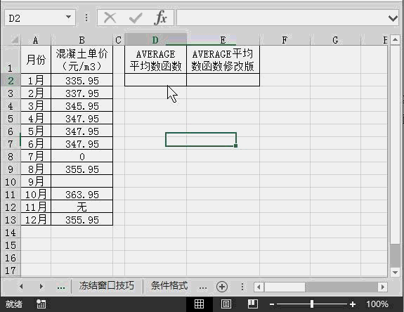 對(duì)于平均數(shù)函數(shù)Average大家想必不會(huì)陌生,但是工程造價(jià)中某些特殊情況需要將這個(gè)函數(shù)作一個(gè)小小地改動(dòng)以獲得我們所需數(shù)據(jù)。下面請(qǐng)看動(dòng)態(tài)演示: