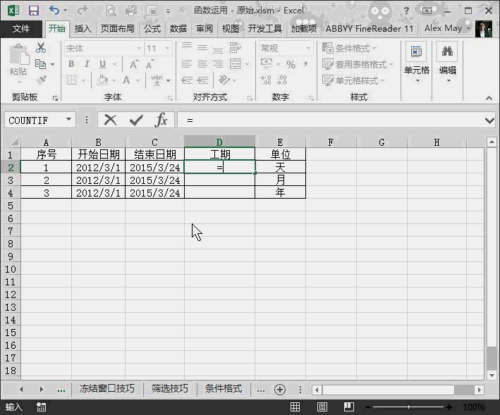 2.Datedif函數(shù)計(jì)算工期及租賃天數(shù)