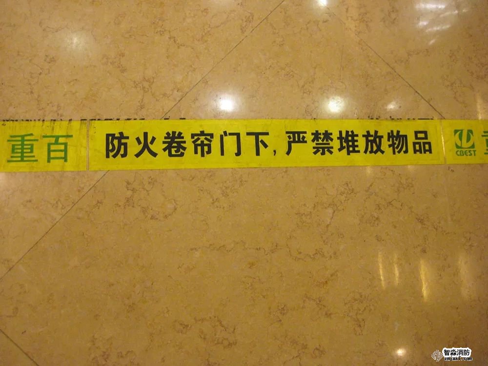 設(shè)置要求:在防火卷簾正下方應(yīng)劃定黃色標(biāo)識線,并標(biāo)明防火卷簾下方嚴(yán)禁占用提示語。