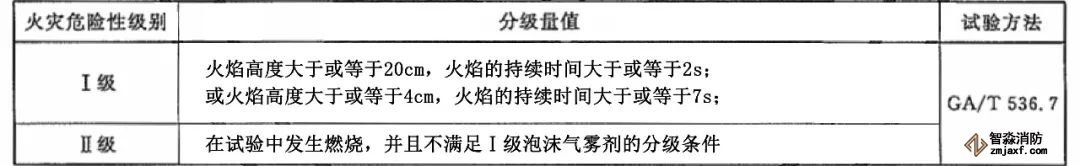 泡沫氣霧劑火災(zāi)危險(xiǎn)性分級(jí)方法見下表: