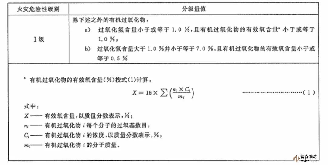 有機(jī)過氧化物火災(zāi)危險(xiǎn)性分級(jí)方法見下表: