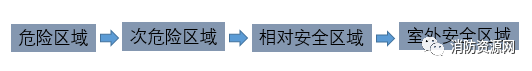 1、室內(nèi)房間屬于危險區(qū)域,一旦發(fā)生火災(zāi),人員應(yīng)迅速疏散至相對安全的次危險區(qū)域(疏散走道),通過疏散走道疏散至安全出口(圖示1)。