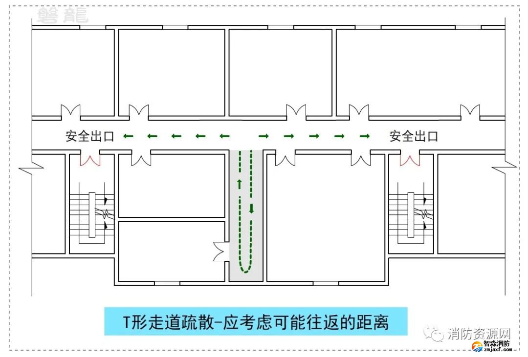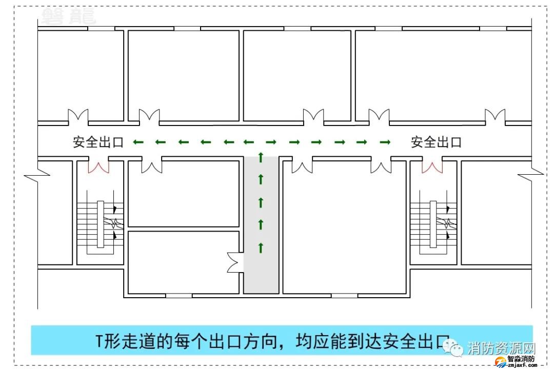 四、關(guān)于T形走道的疏散方案及疏散距離計(jì)算,參專題: T形走道-宜與忌!疏散距離計(jì)算規(guī)則!