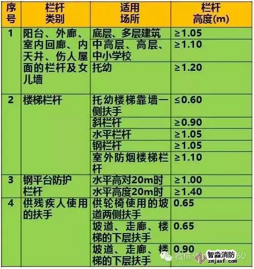 ❷間作安全防護欄桿時,其高度從露面算起應(yīng)不低于1.05m(多層)和1.10m(高層)
