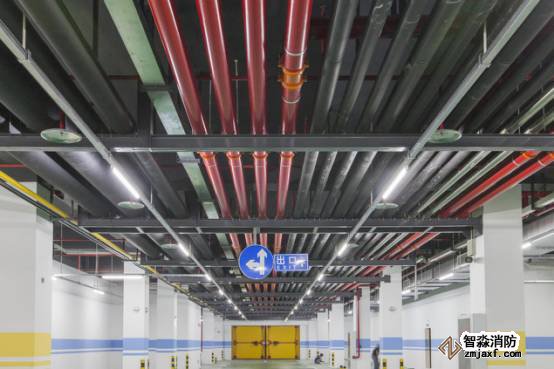 車庫管線排布美觀,聯(lián)合支吊架安全可靠,管道居套管中,燈帶線槽平直,噴淋布置間距一致,標(biāo)識(shí)清晰。