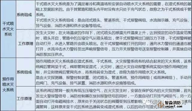 自動噴水滅火系統(tǒng)是一種固定式自動滅火的設(shè)施,它自動探測火災(zāi),自動控制滅火劑的施放,按照管網(wǎng)上噴頭的開閉形式分為閉式系統(tǒng)和開式系統(tǒng),閉式自動噴水系統(tǒng)又包括:濕式系統(tǒng)、干式系統(tǒng)、預(yù)作用系統(tǒng)、循環(huán)系統(tǒng);開式自動噴水系統(tǒng)也包括:雨淋滅火系統(tǒng)、水幕系統(tǒng)、水噴霧系統(tǒng)。