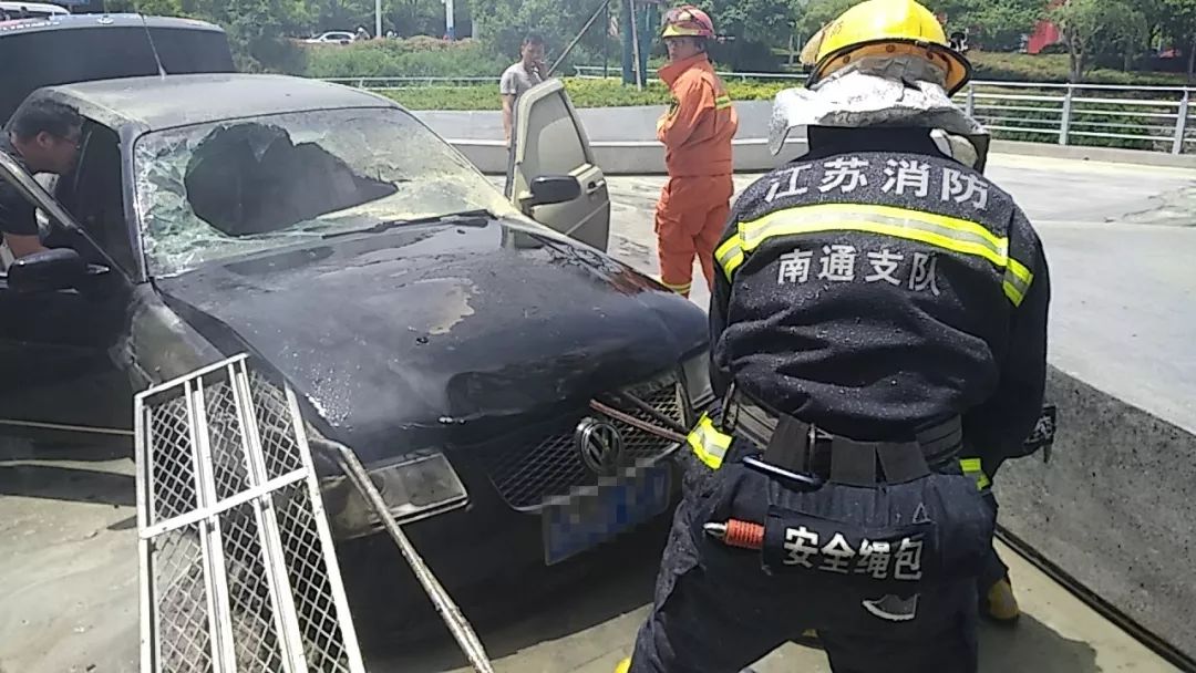 2019年5月14日11時(shí)02分,南通市海門119指揮中心接到報(bào)警稱:位于海門市中南世紀(jì)城格蕾絲酒店前面轎車自燃。北海路中隊(duì)2輛消防車、12名消防員立即趕赴現(xiàn)場處置。