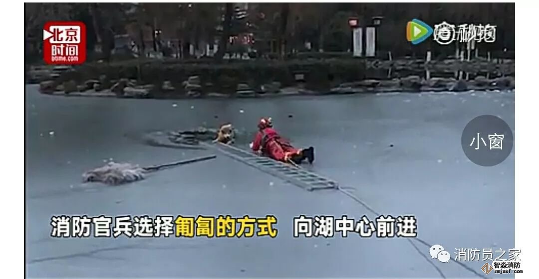 2月7日,西安一只寵物狗被困湖中心的冰窟窿里。消防員身系繩索在冰面上匍匐前進,盡管冰面發(fā)生破裂,消防員還是將狗救回岸邊。