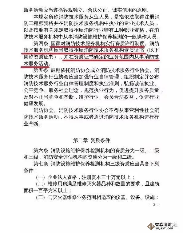 “ 取消消防設(shè)施維護(hù)保養(yǎng)檢測(cè)、消防安全評(píng)估機(jī)構(gòu)資質(zhì)許可制度,企業(yè)辦理營(yíng)業(yè)執(zhí)照后即可開(kāi)展經(jīng)營(yíng)活動(dòng)。”這是征求意見(jiàn)稿非常重要的一條。