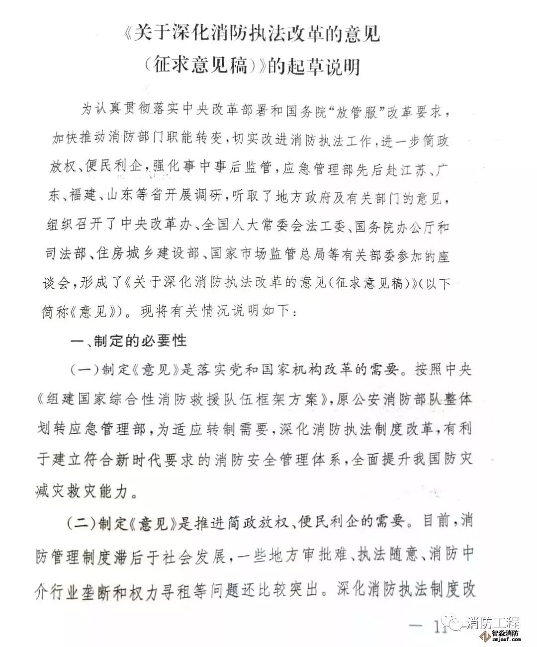 該征求意見(jiàn)稿提出“消防技術(shù)服務(wù)結(jié)論不再作為消防審批的前置條件”。消防審批不是已經(jīng)劃轉(zhuǎn)到住建部門(mén)了嗎,怎么應(yīng)急管理部提關(guān)于“消防審批”的事情。原來(lái),參加部位座談會(huì)的有“中央改革辦......住房城鄉(xiāng)建設(shè)部......”。推測(cè):可能在這個(gè)會(huì)上,征求了住房城鄉(xiāng)建設(shè)部關(guān)于工程建設(shè)的消防審批意見(jiàn),住建部本著改革的要求,研究同意這個(gè)提法(做法)——“消防技術(shù)服務(wù)結(jié)論不再作為消防審批的前置條件”。