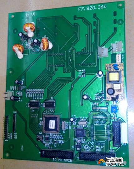 海灣GST500主機液晶顯示器無背光,拆下液晶顯示器的發(fā)光管,可以點亮,說明發(fā)光部分沒有問 題,問題出在開關板上,開關板上有一升壓模塊(圖中標出紅色的部分),提供液晶顯示器背光所需的 高壓。