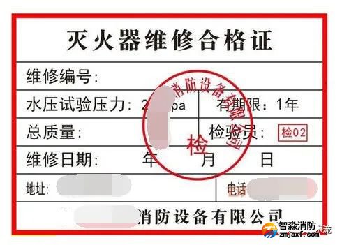 維修合格證應(yīng)采用不加熱的方法固定在滅火器的氣瓶(筒體)上,但不應(yīng)覆蓋原滅火器上的銘牌標(biāo)志。將其從滅火器的氣瓶(筒體)上去除時(shí),應(yīng)自行破損。