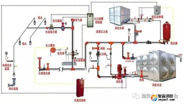 3、噴頭動(dòng)作后或末端泄放裝置打開(kāi),聯(lián)動(dòng)泵后管道前端無(wú)水